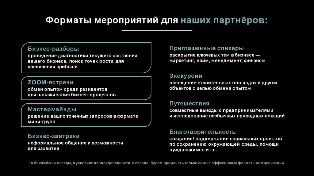 Форматы мероприятий для наших партнёров:Бизнес-разборы
