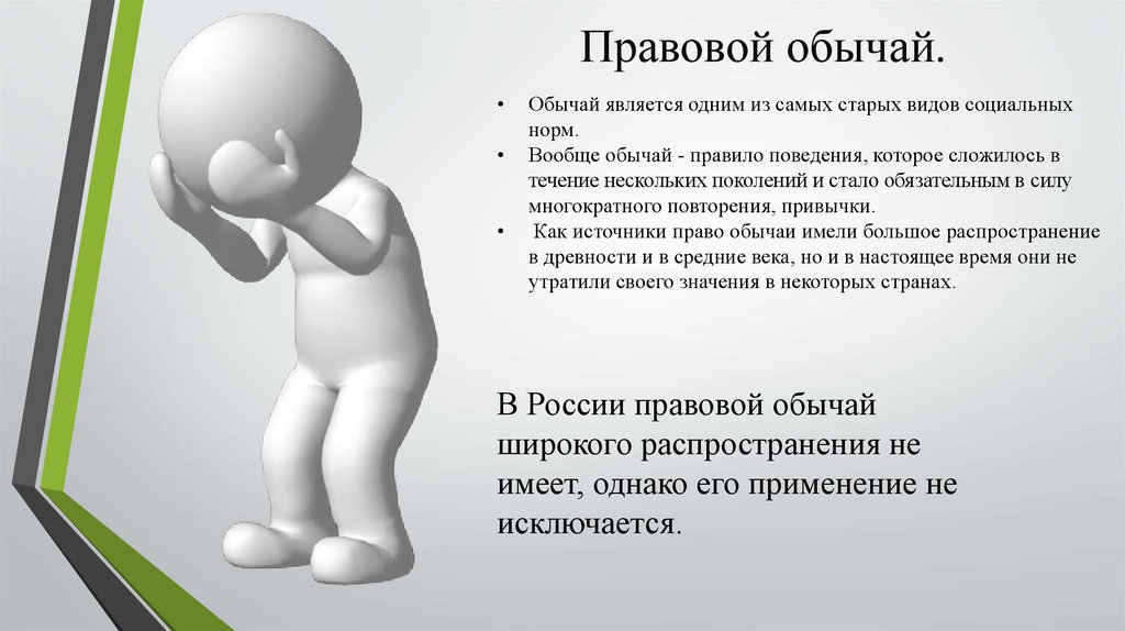 Правовой обычай.Обычай является одним из самых старых видов социальных