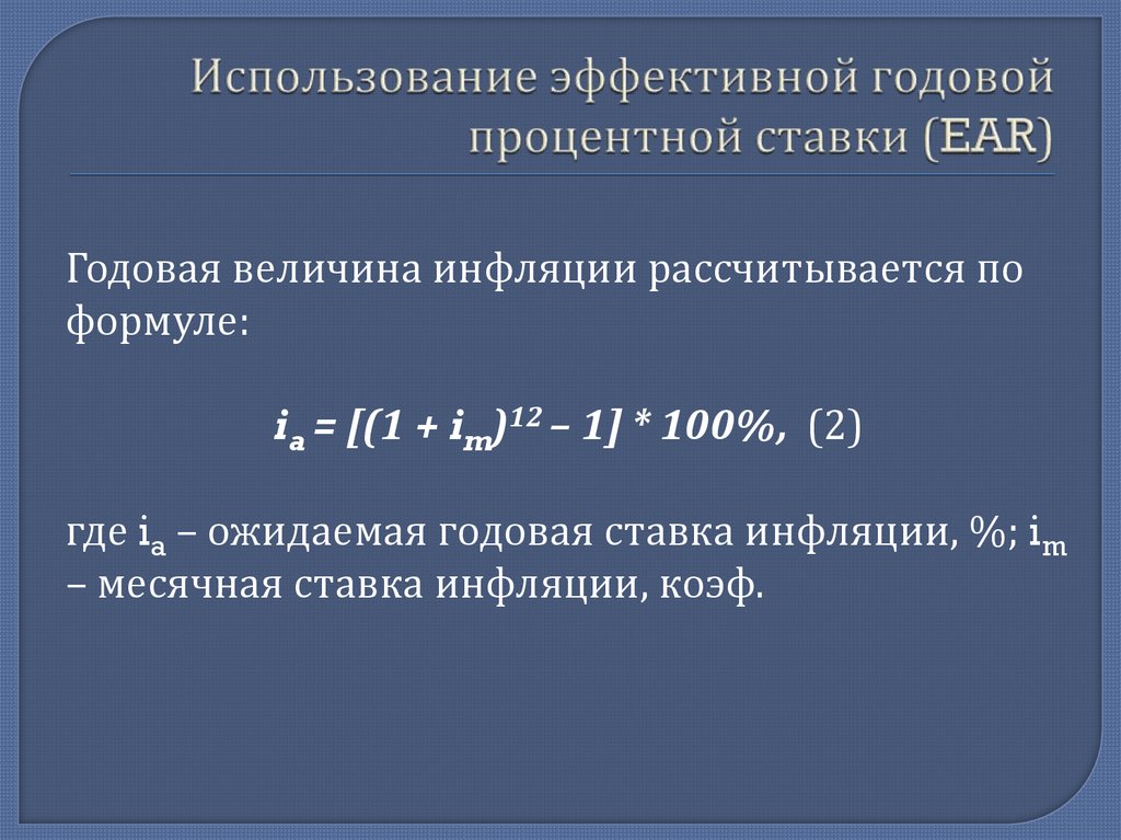 где ia – ожидаемая годовая ставка инфляции, %; im
