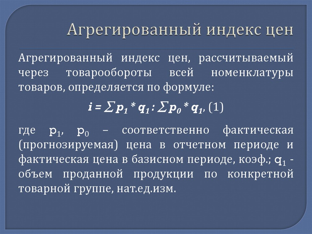 Агрегированный индекс цен, рассчитываемыйчерез товарообороты всей номенклатуры