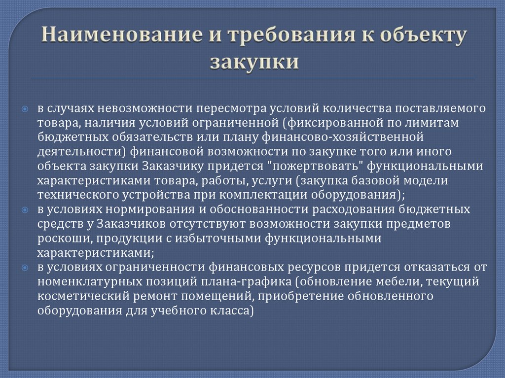 объекта закупки Заказчику придется "пожертвовать" функциональными