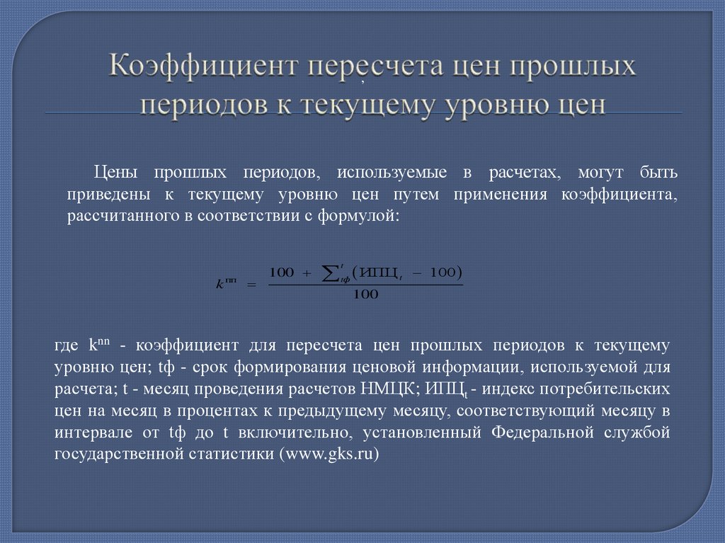 где knn - коэффициент для пересчета цен прошлых периодов к текущему