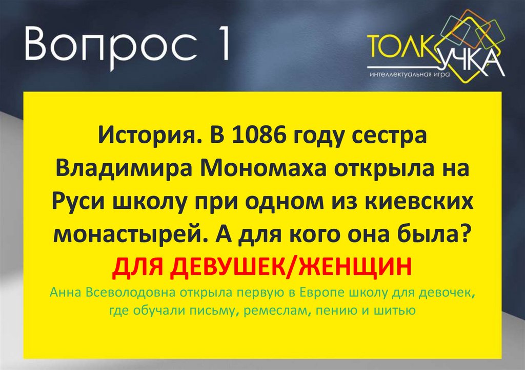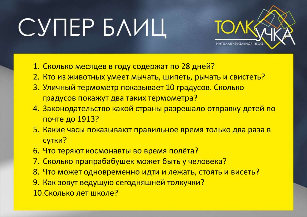 9. Как зовут ведущую сегодняшней толкучки? (Даша)