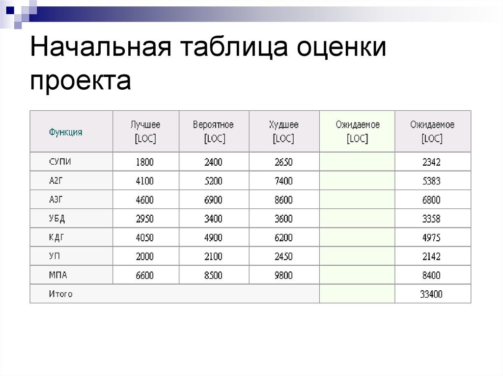 LOCожi =(LOCлучшi +LOCхудшi +4 хLOCвероятнi)/6,