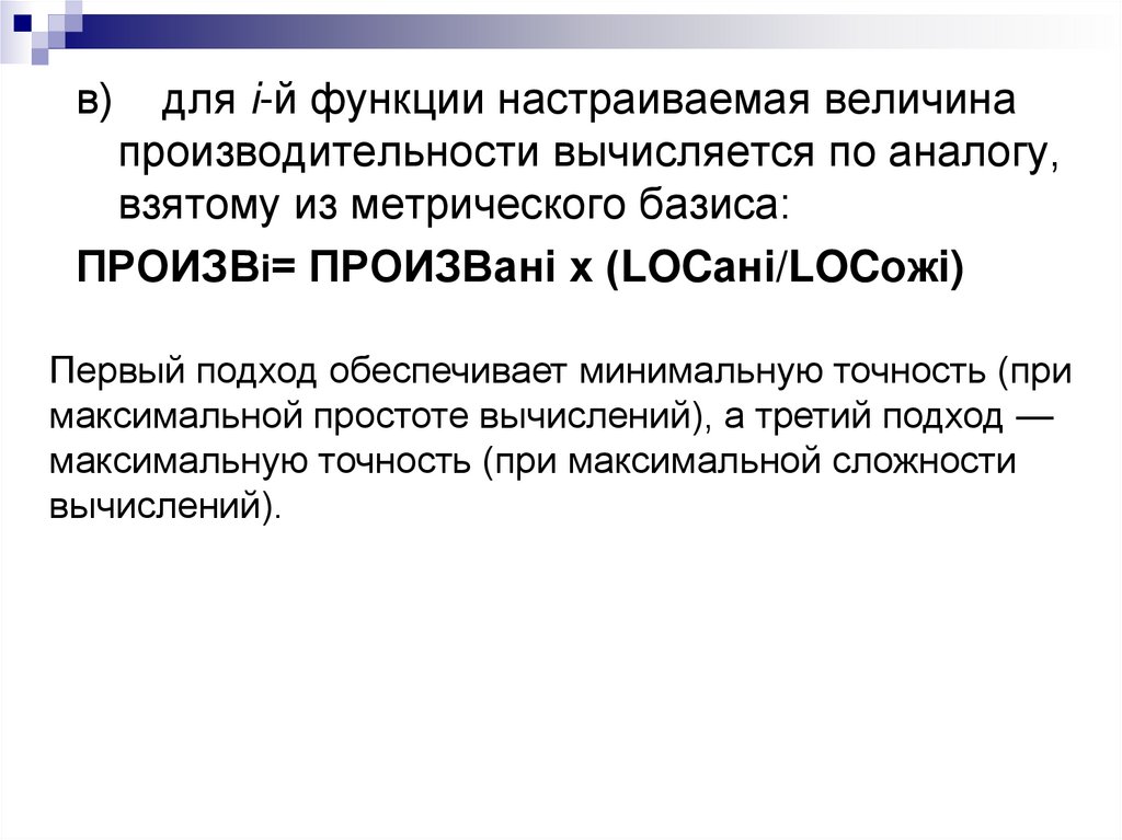 4. Определяется значение LOC- или FPпроизводительности разработки функции.Используется один из трех подходов:
