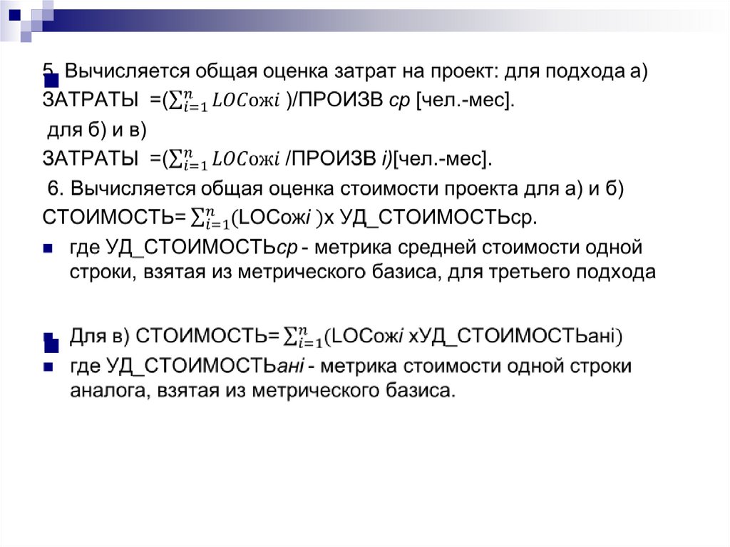 ЗАТРАТЫ i = (LOCожi /ПРОИЗВ i)[чел.-мес].