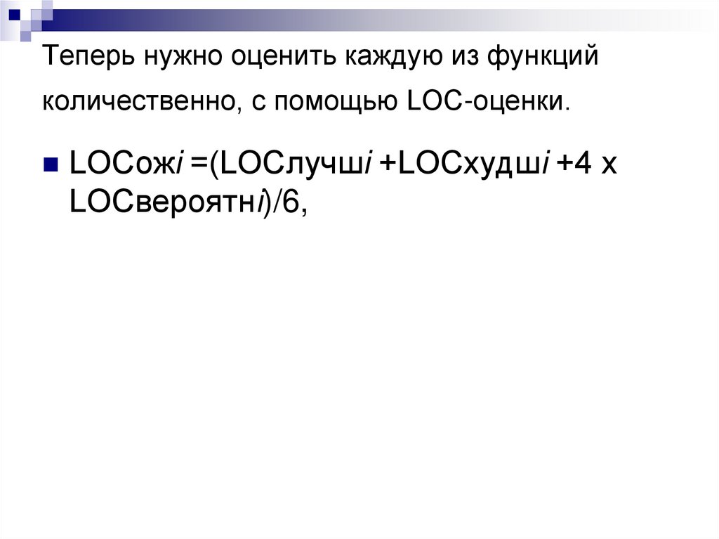 10. Теперь нужно оценить каждую из функций количественно, с помощью LOC-оценки.