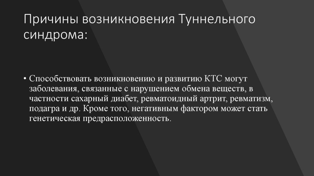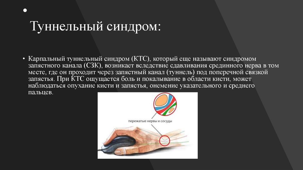 • Карпальный туннельный синдром (КТС), который еще называют синдромом