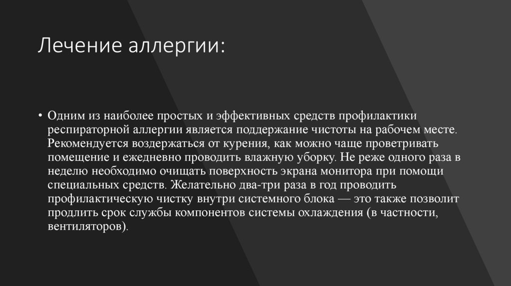 респираторной аллергии является поддержание чистоты на рабочем месте.