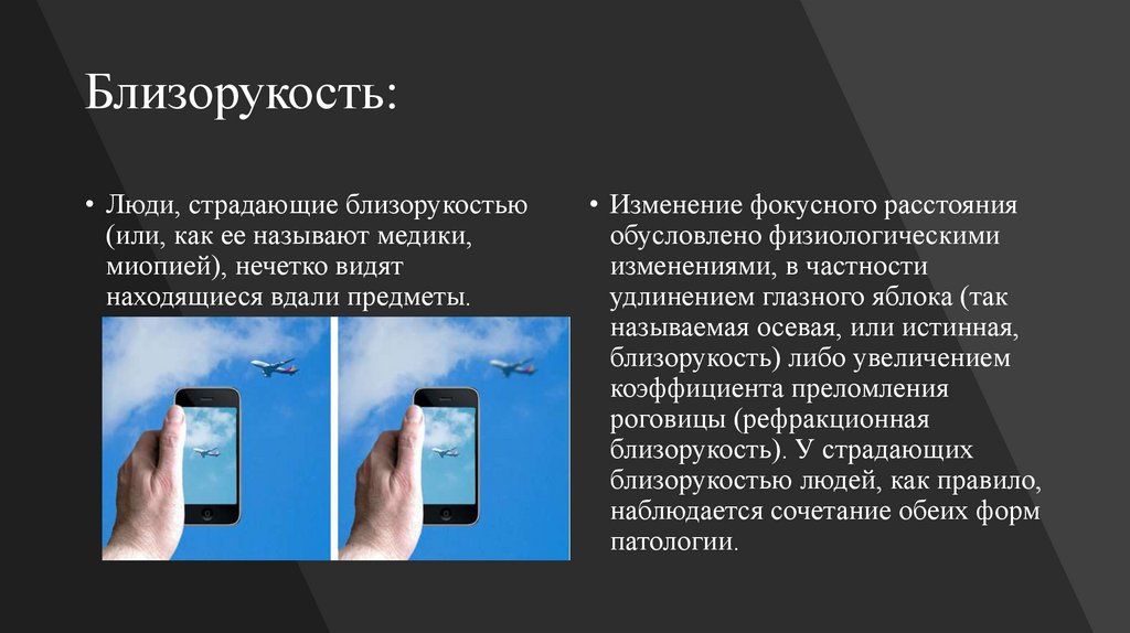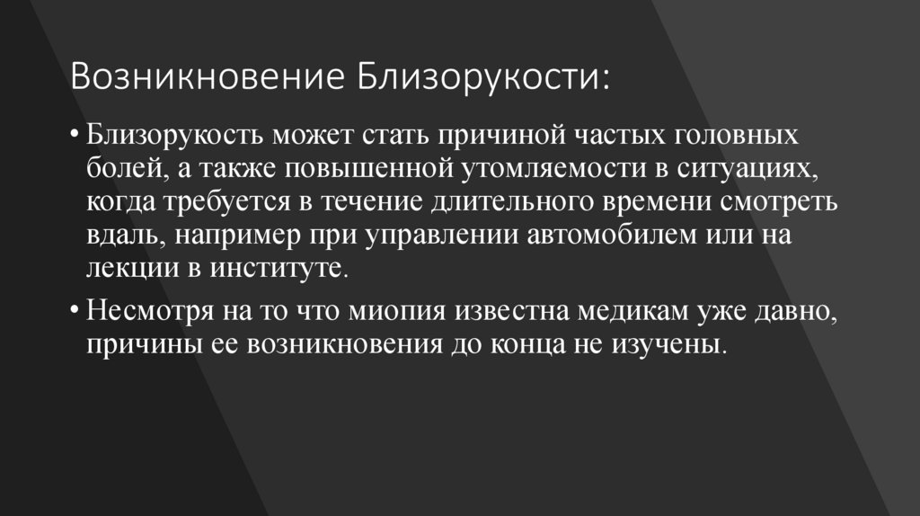 Возникновение Близорукости:• Близорукость может стать причиной частых головных