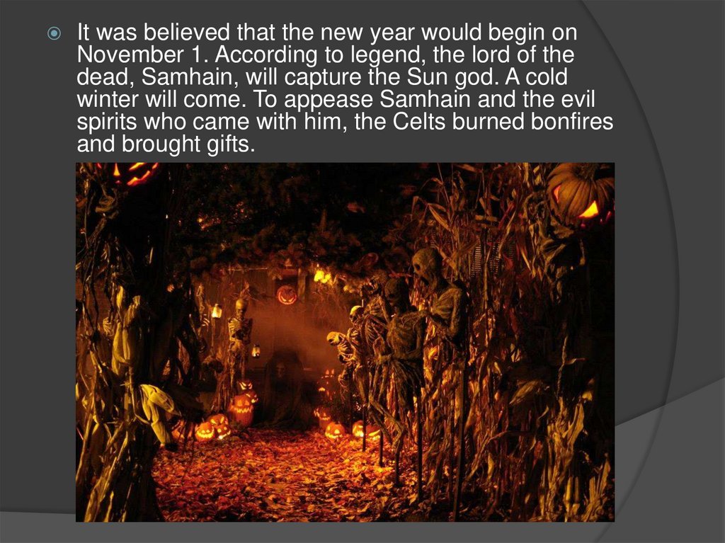 It was believed that the new year would begin onNovember 1. According to legend, the lord of the