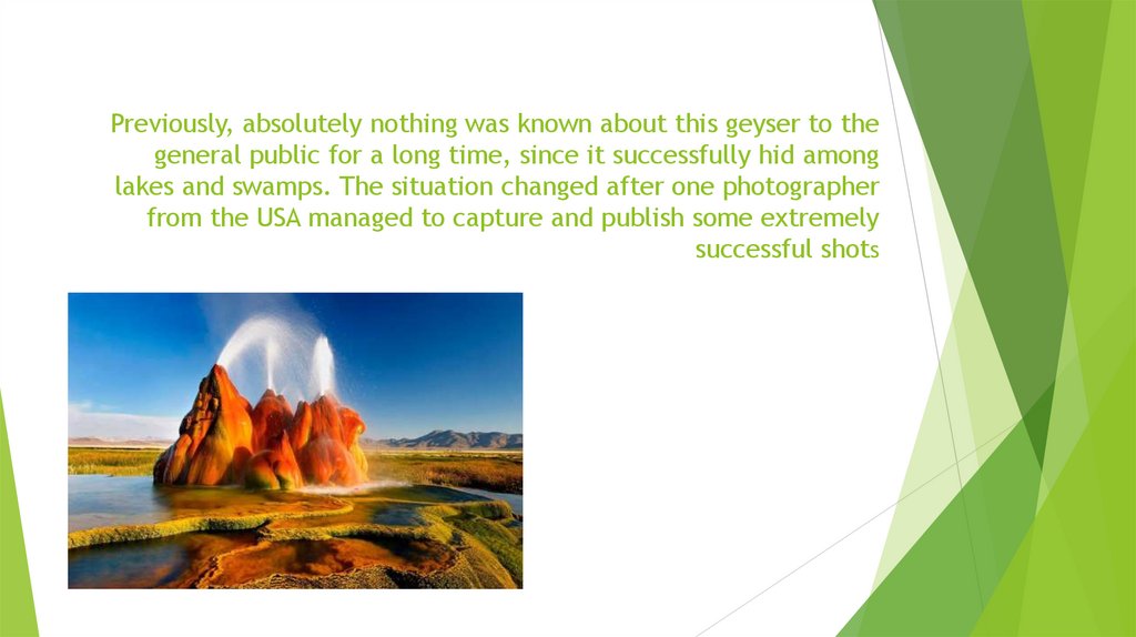 Previously, absolutely nothing was known about this geyser to thegeneral public for a long time, since it successfully hid among