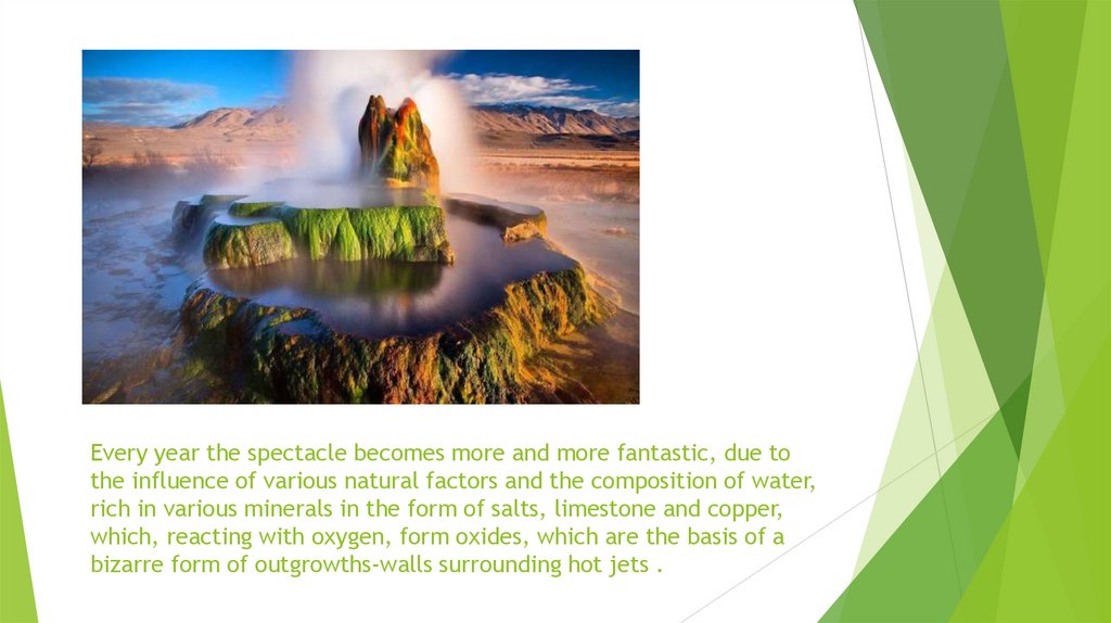 Every year the spectacle becomes more and more fantastic, due tothe influence of various natural factors and the composition of water,
