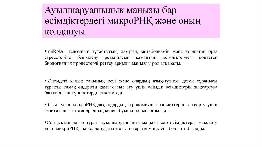 Ауылшаруашылық маңызы барөсімдіктердегі микроРНҚ және оның