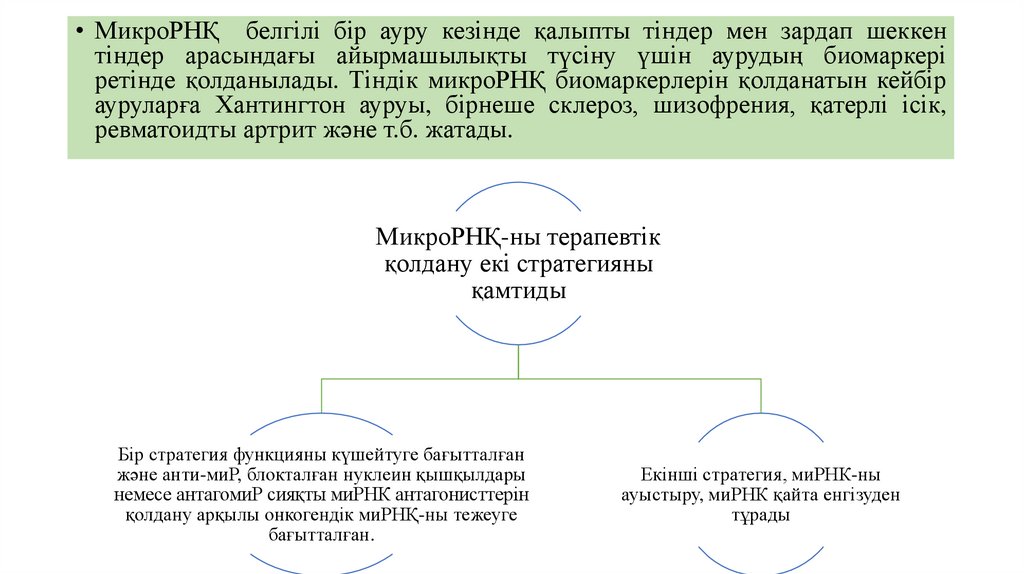 үшін микроРНҚ-ны қолданудағы жетістіктер өте маңызды болып табылады.
