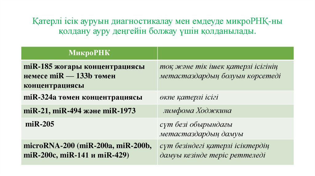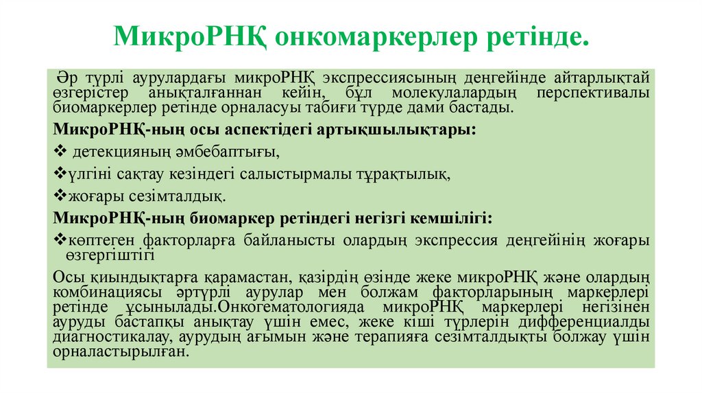 ретінде ұсынылады.Онкогематологияда микроРНҚ маркерлері негізінен