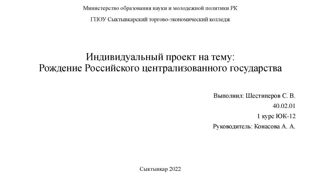 Министерство образования науки и молодежной политики РКГПОУ Сыктывкарский торгово-экономический колледж