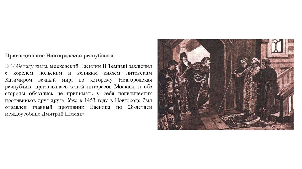Присоединение Новгородской республики.В 1449 году князь московский Василий II Тёмный заключил