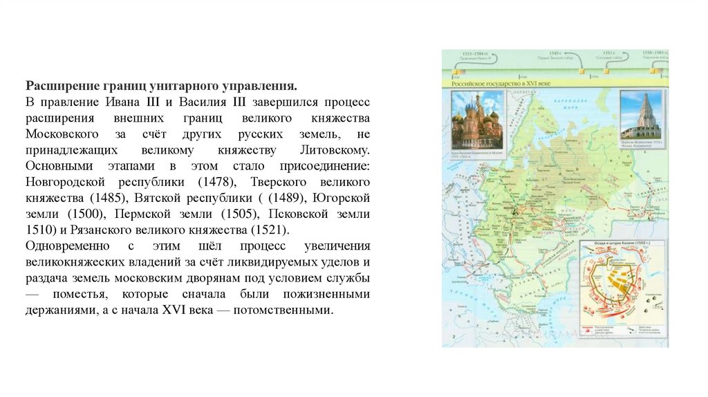 Расширение границ унитарного управления.В правление Ивана III и Василия III завершился процесс