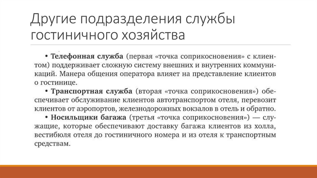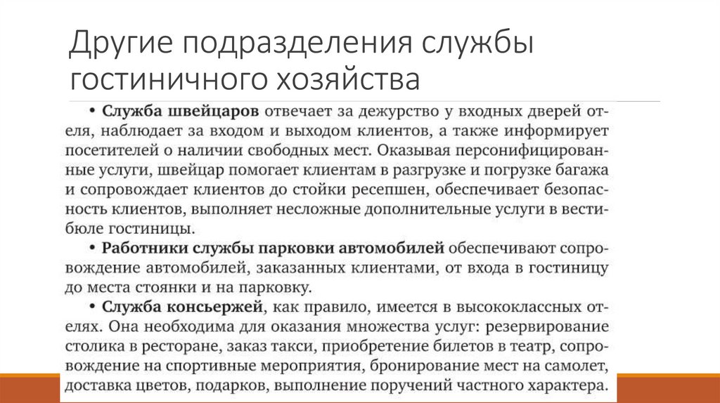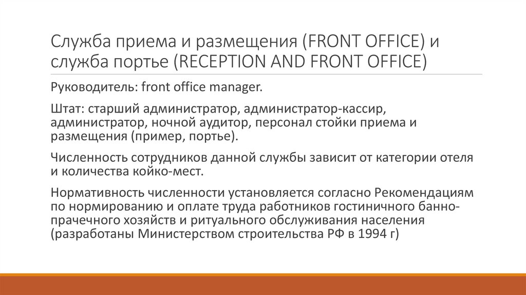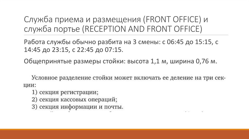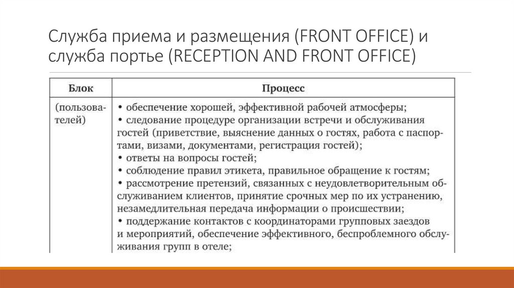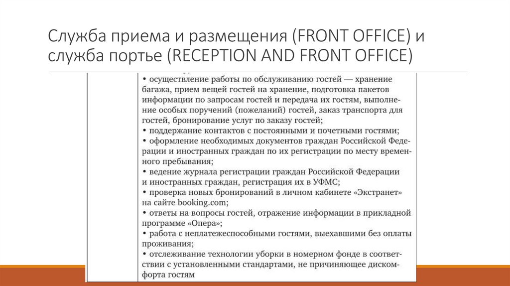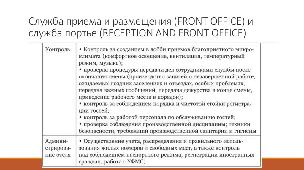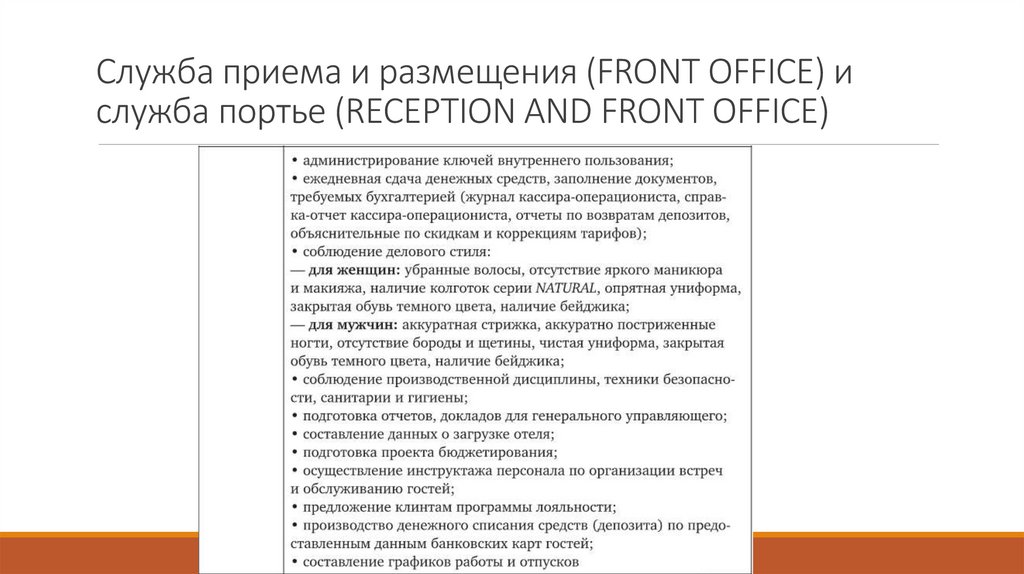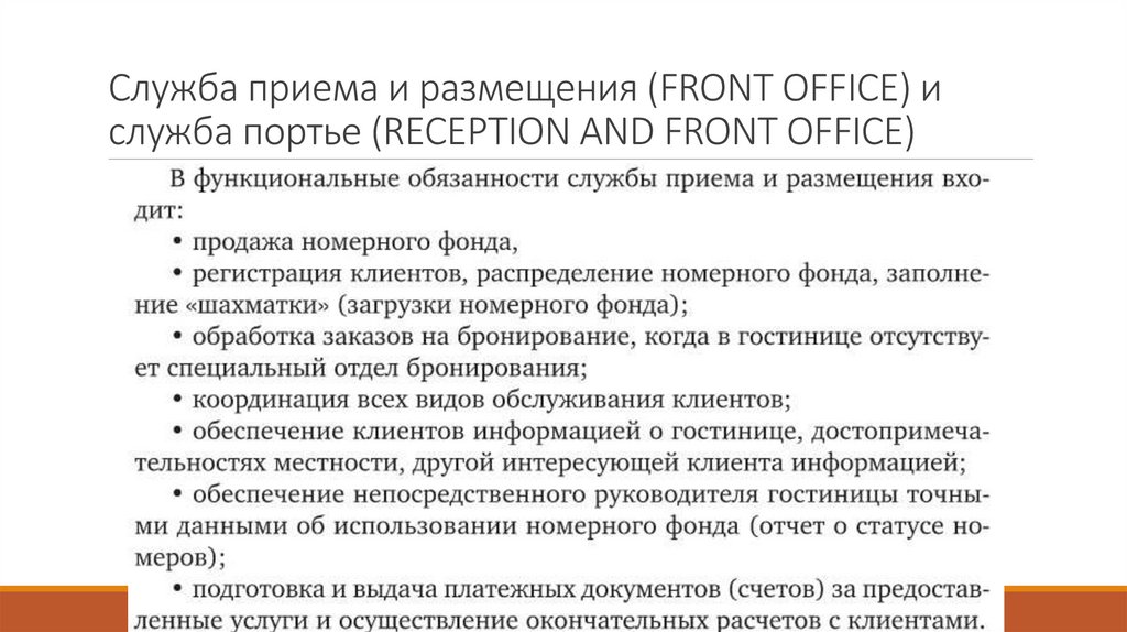 Служба приема и размещения (FRONT OFFICE) ислужба портье (RECEPTION AND FRONT OFFICE)