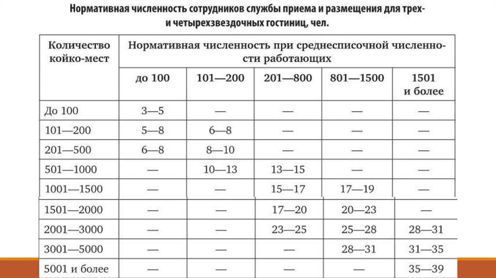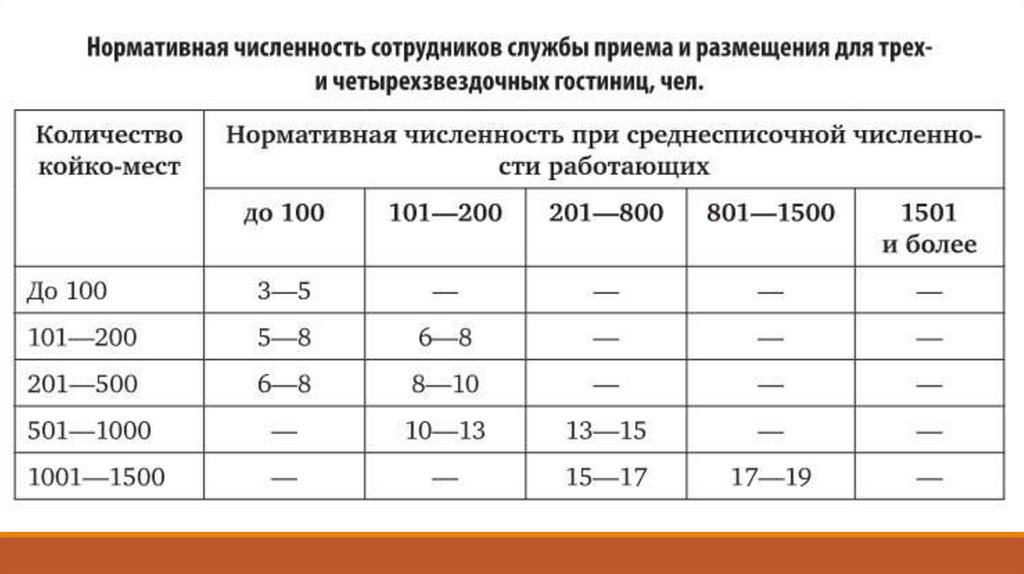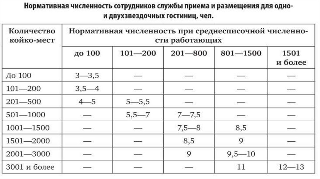 Размер штата зависит от размера отеля, категорийности (бренда), количества койко-мест,