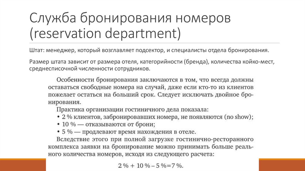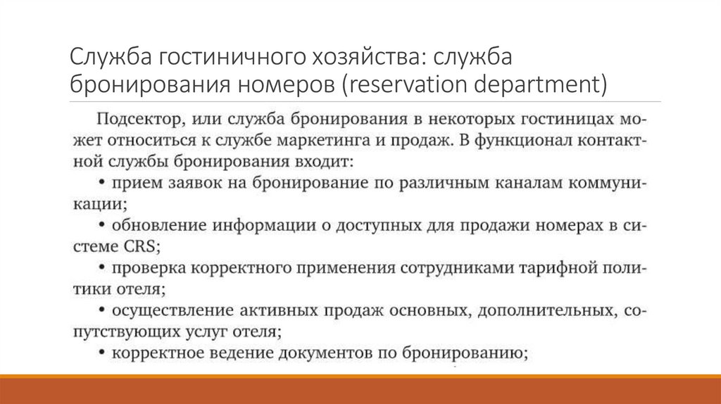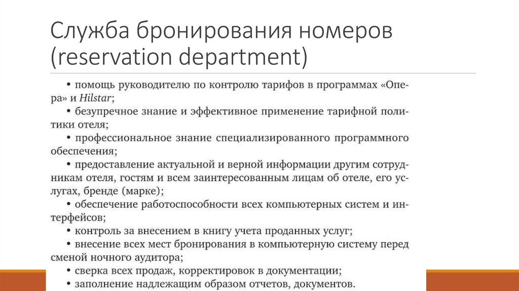 Служба гостиничного хозяйства: службабронирования номеров (reservation department)