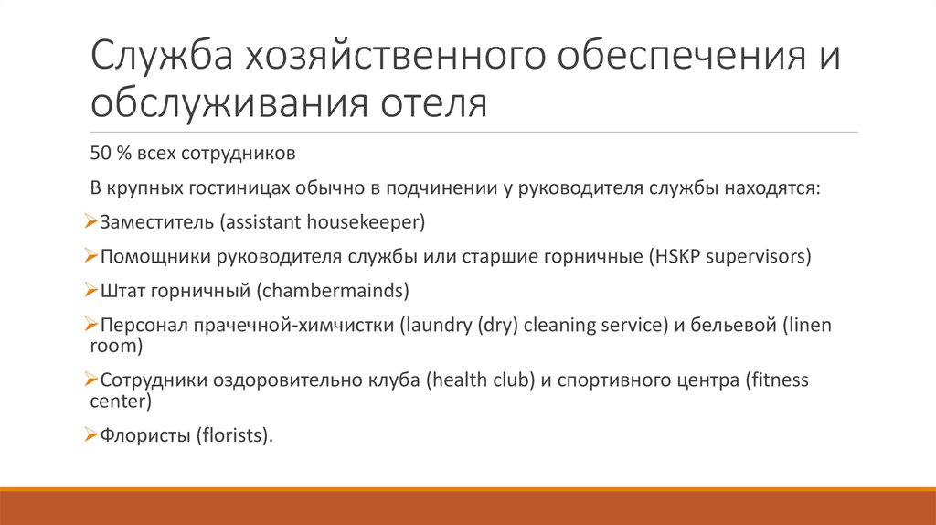 В крупных гостиницах обычно в подчинении у руководителя службы находятся: