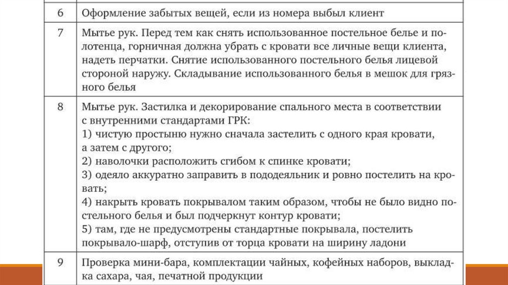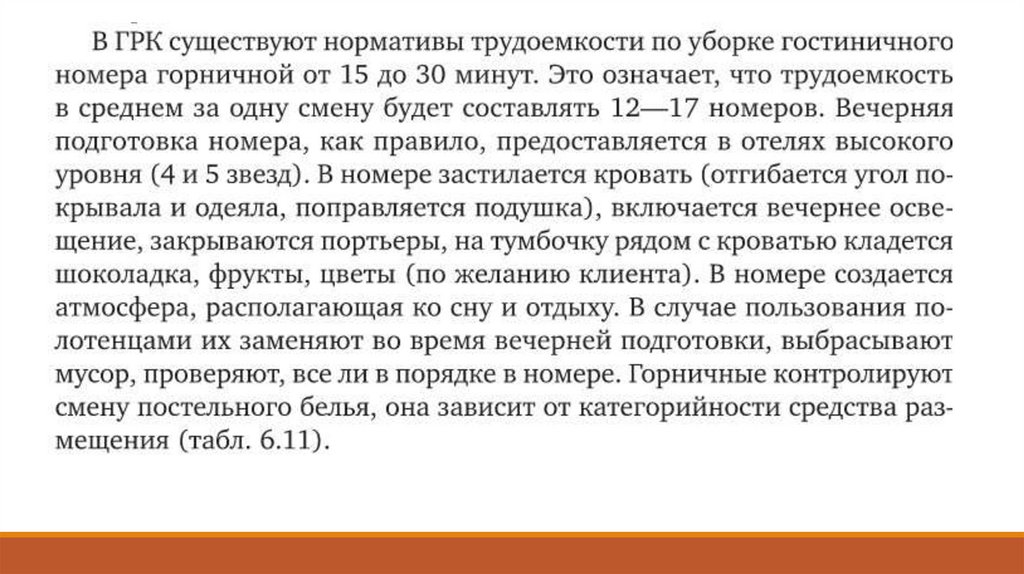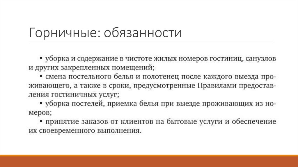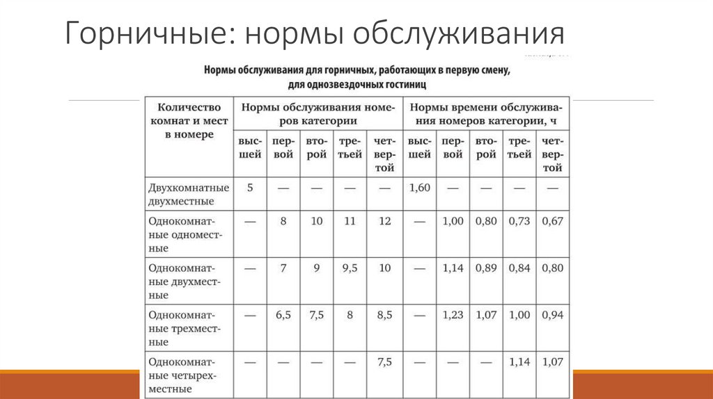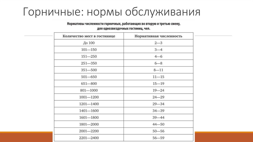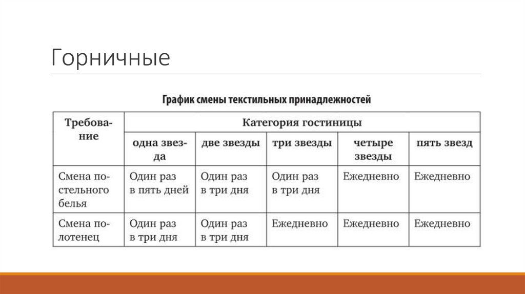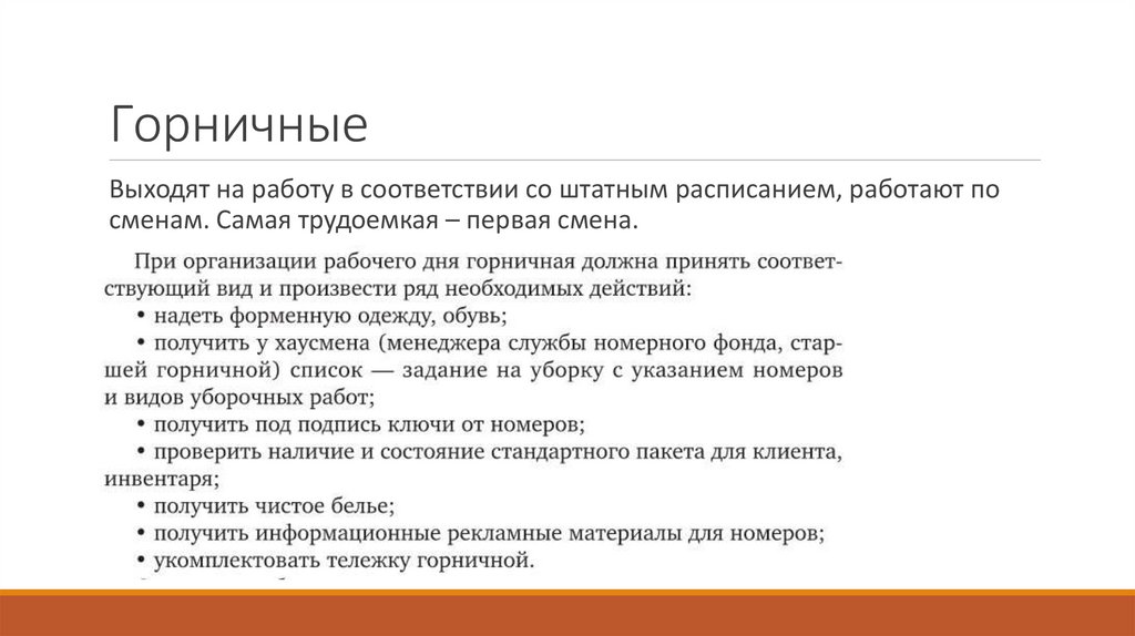 ГорничныеВыходят на работу в соответствии со штатным расписанием, работают по