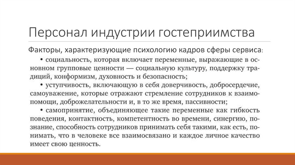 Персонал индустрии гостеприимстваФакторы, характеризующие психологию кадров сферы сервиса: