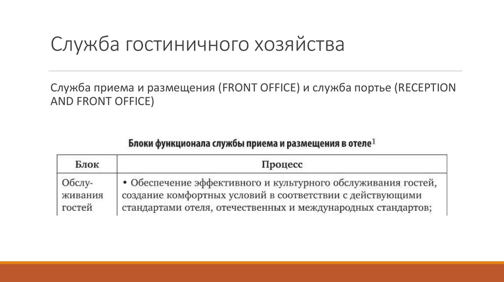 Служба гостиничного хозяйстваСлужба приема и размещения (FRONT OFFICE) и служба портье (RECEPTION