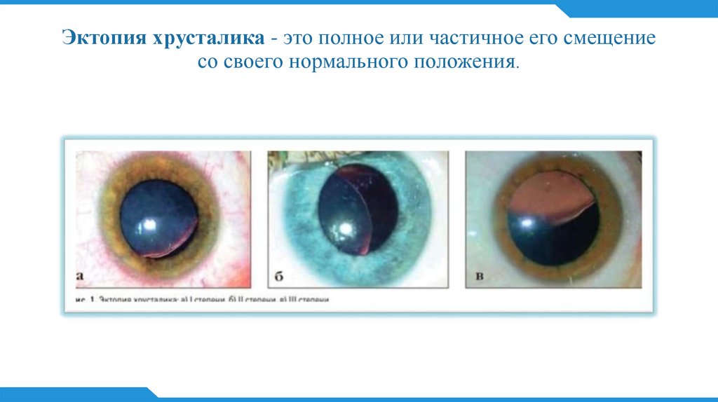 Эктопия хрусталика - это полное или частичное его смещениесо своего нормального положения.