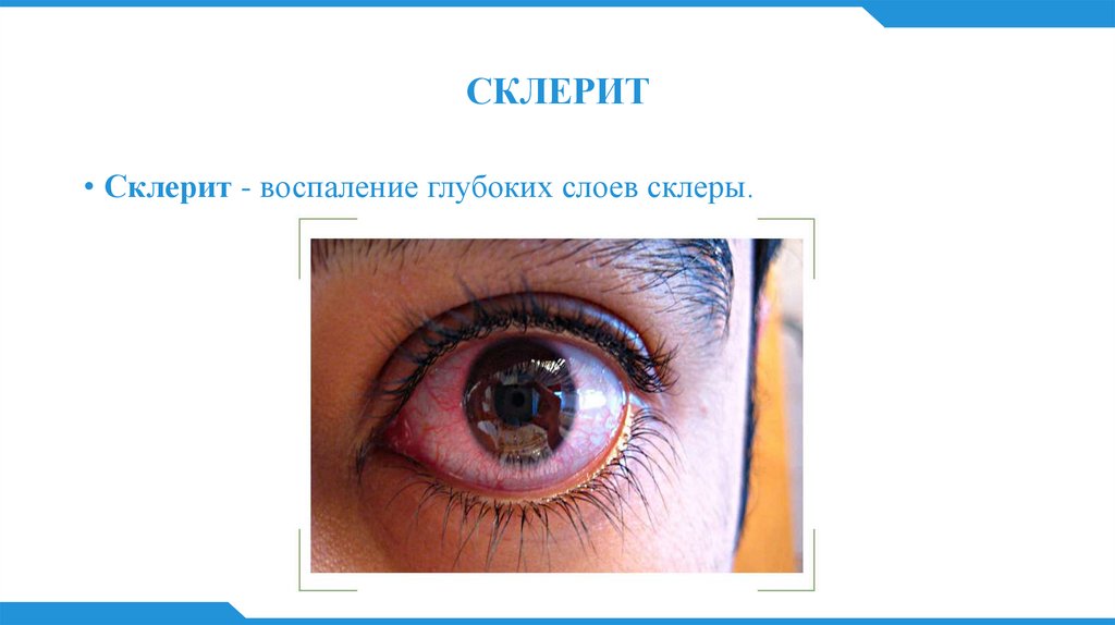СКЛЕРИТ• Склерит - воспаление глубоких слоев склеры.