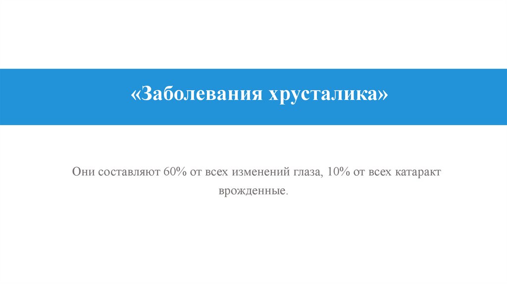 «Заболевания хрусталика»«Они составляют 60% от всех изменений глаза, 10% от всех катаракт
