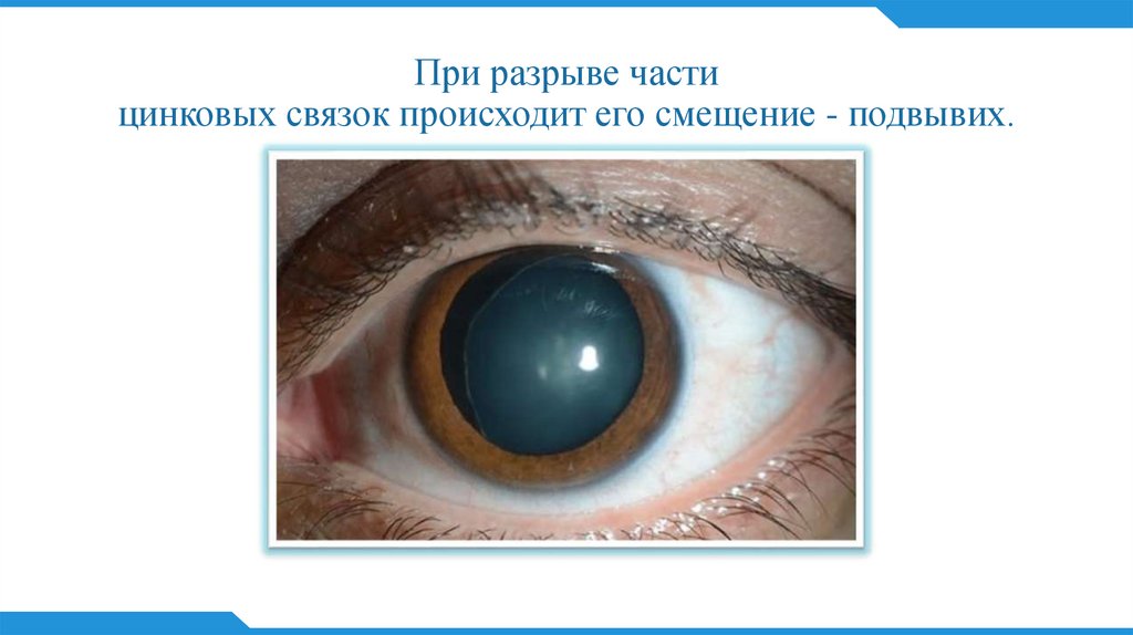 При разрыве частицинковых связок происходит его смещение - подвывих.