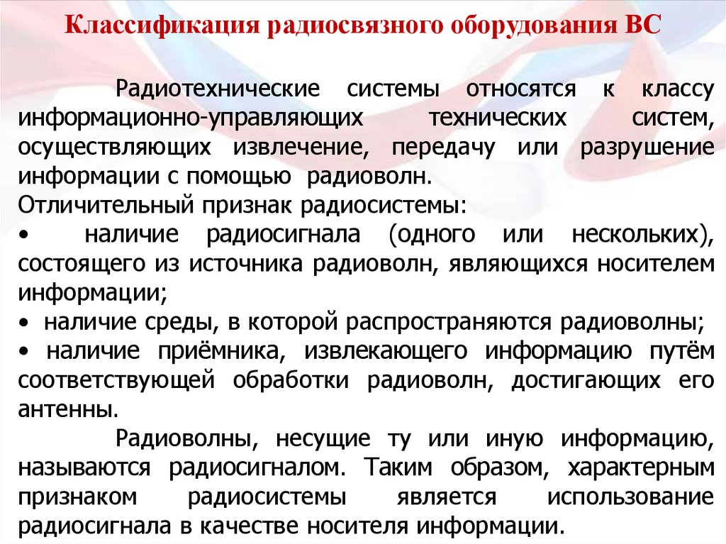 Классификация радиосвязного оборудования ВСРадиотехнические системы относятся к классу
