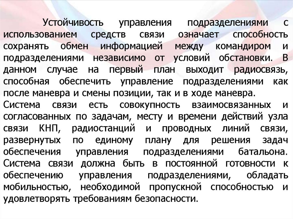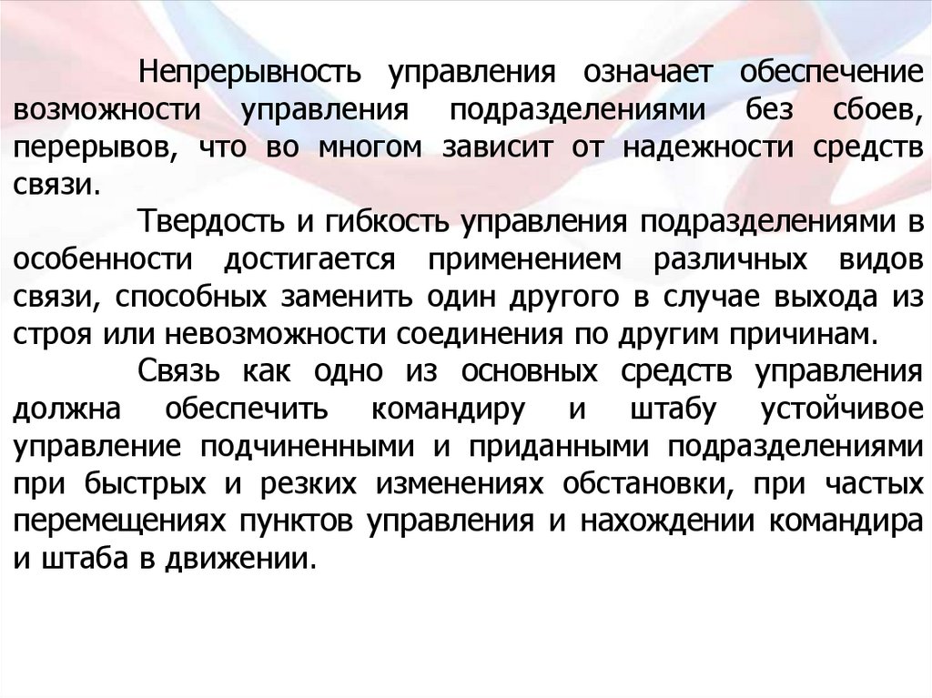 Непрерывность управления означает обеспечениевозможности управления подразделениями без сбоев,