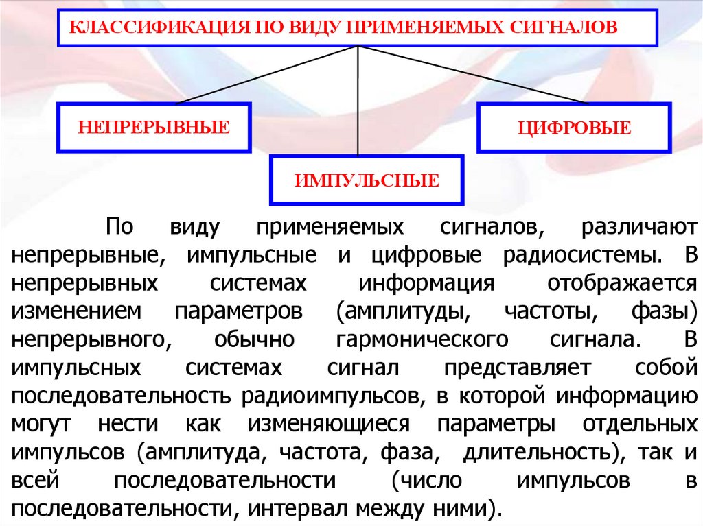КЛАССИФИКАЦИЯ ПО ВИДУ ПРИМЕНЯЕМЫХ СИГНАЛОВНЕПРЕРЫВНЫЕ