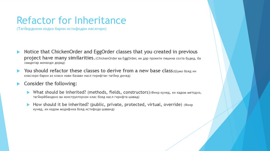 Refactor for Inheritance(Тагйирдихии кодхо барои истифодаи наслгири)