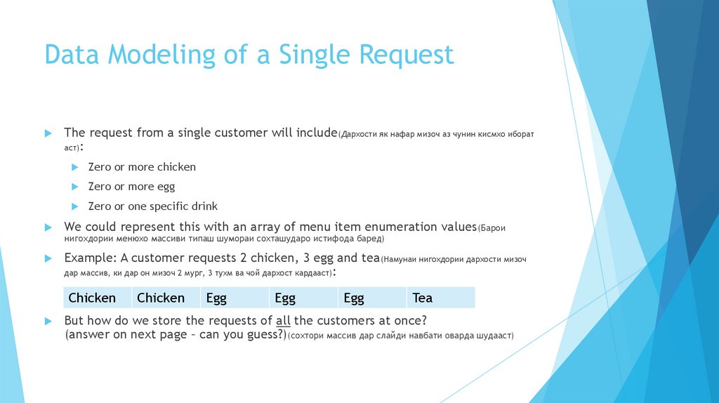 Data Modeling of a Single RequestThe request from a single customer will include(Дархости як нафар мизоч аз чунин кисмхо иборат