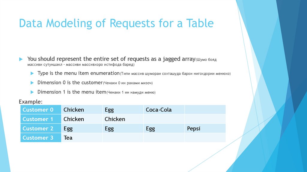 Data Modeling of Requests for a TableYou should represent the entire set of requests as a jagged array(Шумо бояд