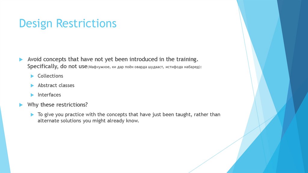 Design RestrictionsAvoid concepts that have not yet been introduced in the training.