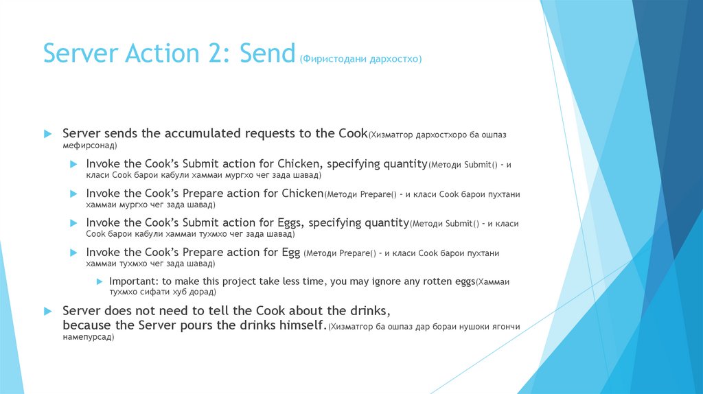Server sends the accumulated requests to the Cook(Хизматгор дархостхоро ба ошпаз