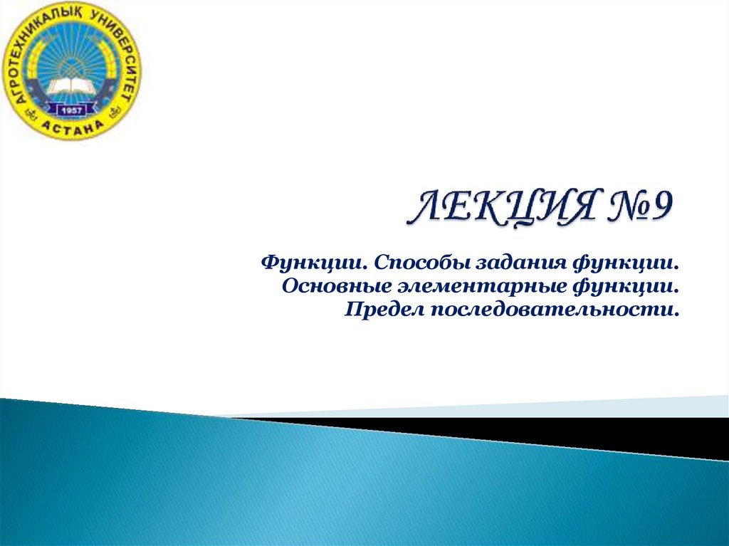 Функции. Способы задания функции. Основные элементарные функции. Предел последовательности (лекция № 9)