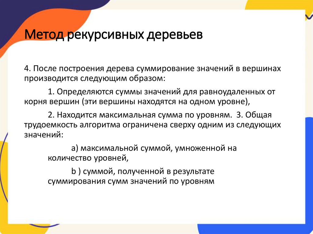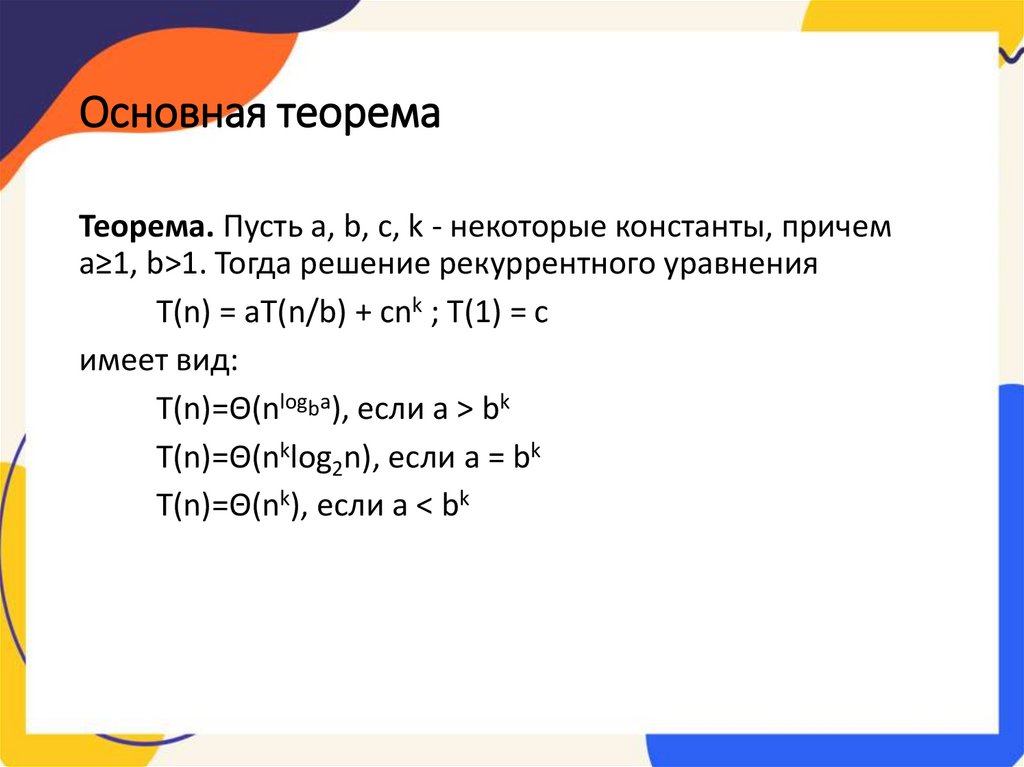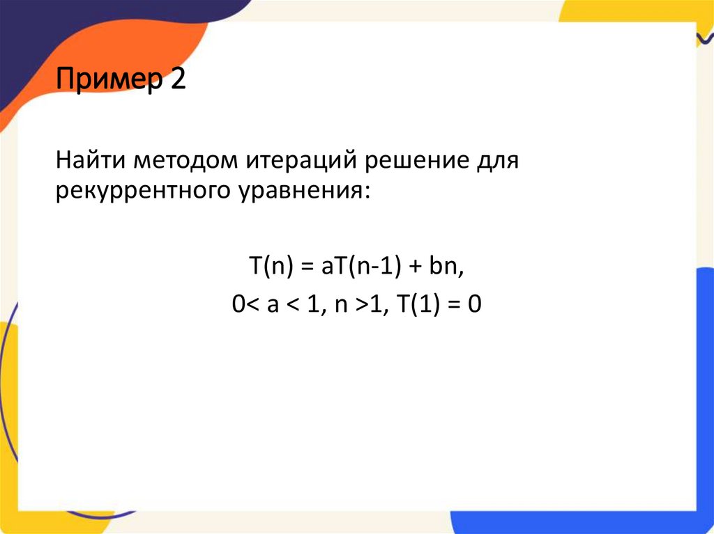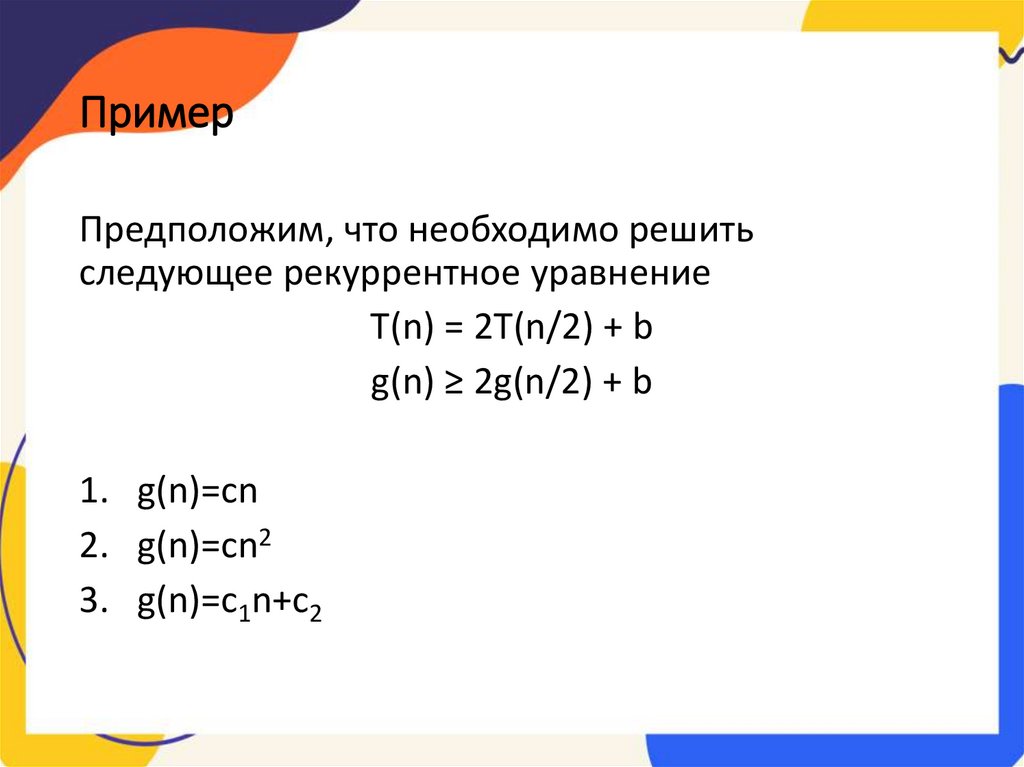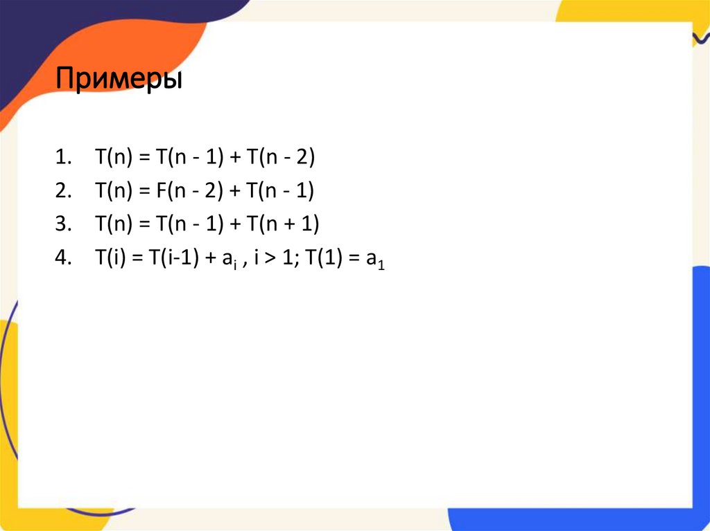 Примеры рекуррентных уравнений1. Нахождение максимального элемента из n