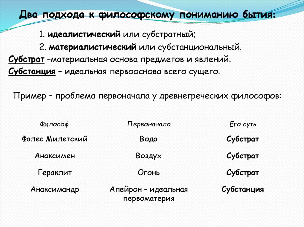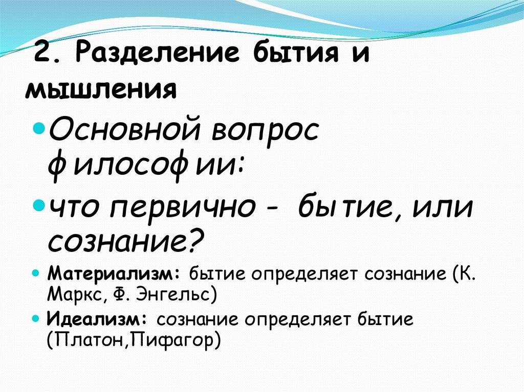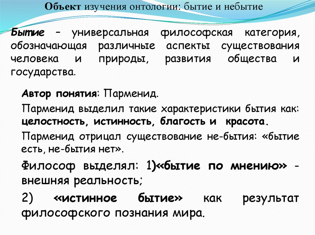 Основной вопрос онтологииВопрос о соотношении бытия и не-бытия