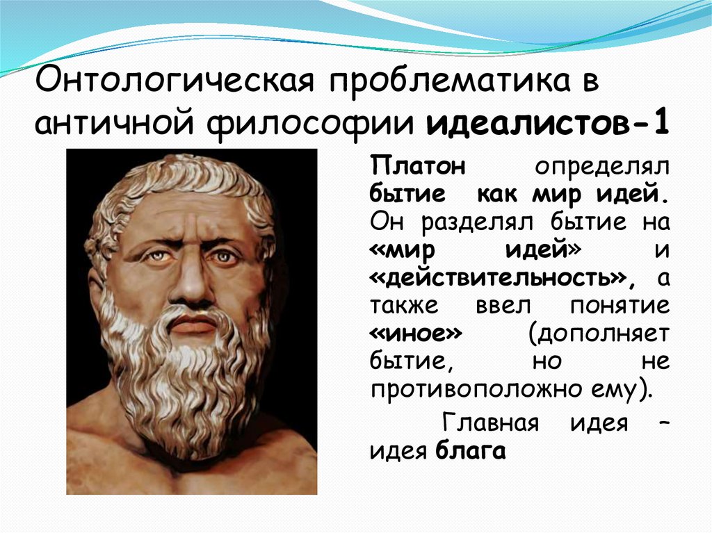 Онтология – раздел философии, изучающий фундаментальныепринципы устройства бытия, его начала, сущностные формы и