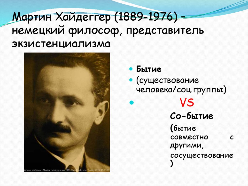 Мартин Хайдеггер (1889-1976) –немецкий философ, представитель