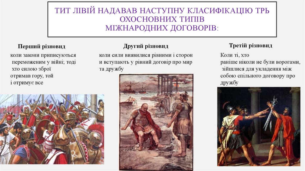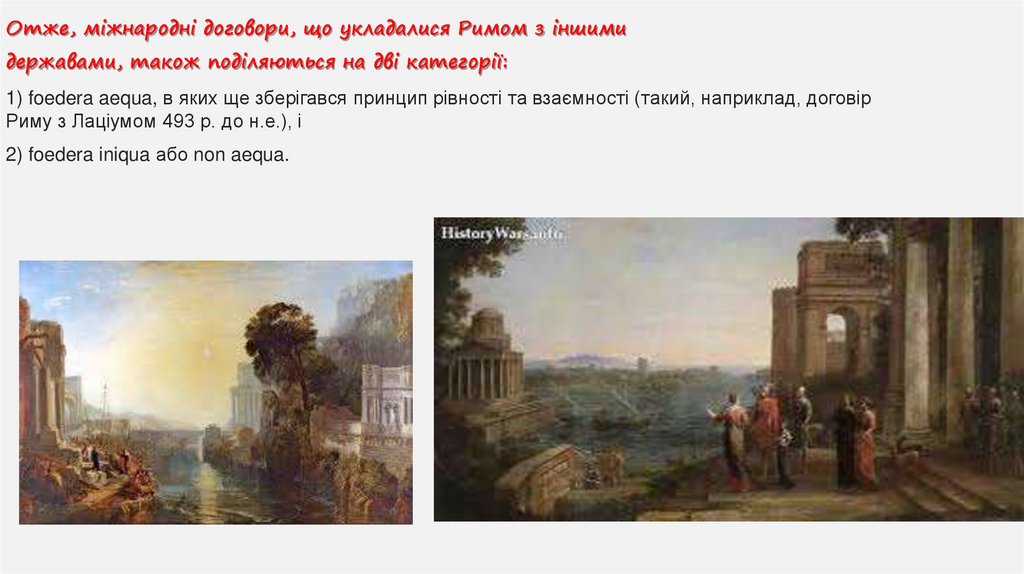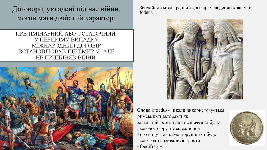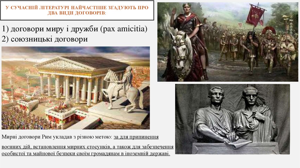 Отже, міжнародні договори, що укладалися Римом з іншимидержавами, також поділяються на дві категорії: