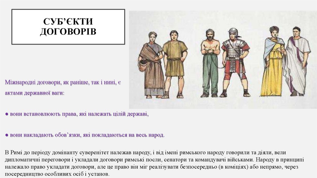 дипломатичні переговори і укладали договори римські посли, сенатори та командувачі військами. Народу в принципі