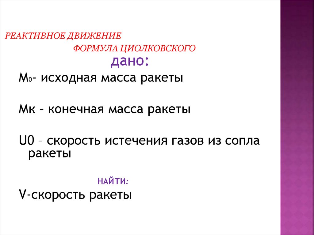 РЕАКТИВНОЕ ДВИЖЕНИЕФОРМУЛА ЦИОЛКОВСКОГО